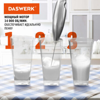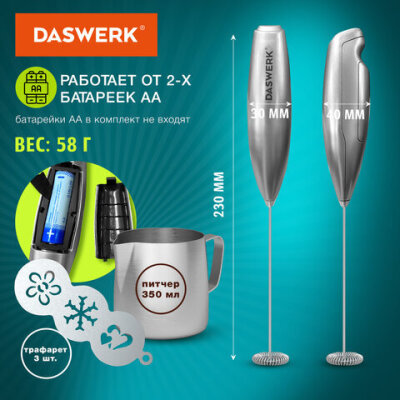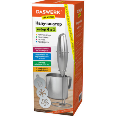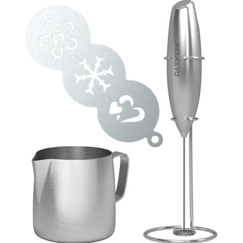 Капучинатор/вспениватель электрический с подставкой, питчером, трафаретами 4 в 1, серебряный, DASWERK (ДАСВЕРК), 456182