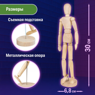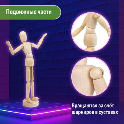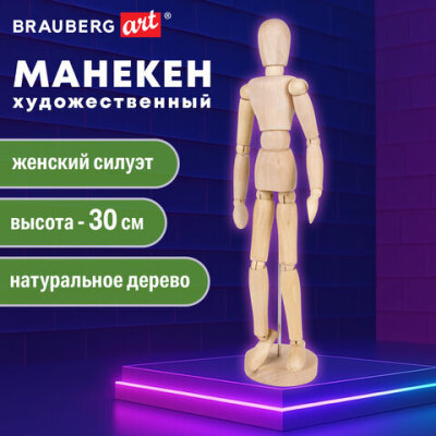 Деревянный манекен BRAUBERG ART "CLASSIC", изображающий женскую человеческую фигуру с подвижными руками, ногами, головой. Применяется художниками для зарисовки различных человеческих поз.