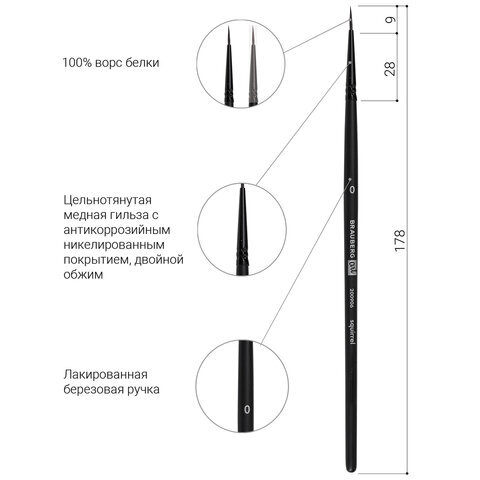 Кисть художественная проф. BRAUBERG ART CLASSIC, белка, круглая, № 0, 200906