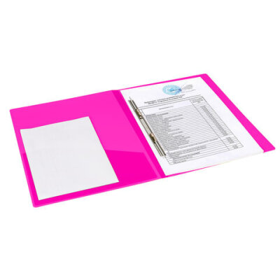 Папка с металлическим скоросшивателем и внутренним карманом BRAUBERG "Neon", 16 мм, розовая, до 100 листов, 0,7 мм, 227466