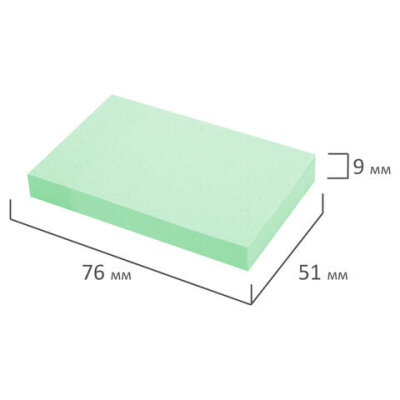 Блок самоклеящийся (стикеры) STAFF STANDARD, ПАСТЕЛЬНЫЙ 76х51 мм, зеленый, 100 листов, 116583
