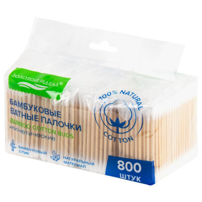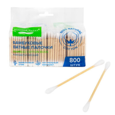 Ватные палочки ЗОЛОТОЙ ИДЕАЛ с бамбуковым стиком предназначены для ежедневных гигиенических и косметических процедур, незаменимы при корректировке и нанесении макияжа.