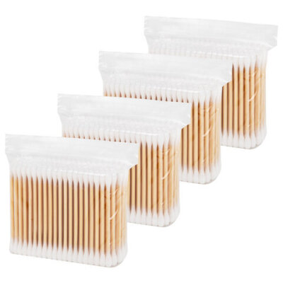 Ватные палочки КОМПЛЕКТ 4х200 шт., бамбуковый стик, 100% хлопок, зип-лок, ЗОЛОТОЙ ИДЕАЛ, 116560