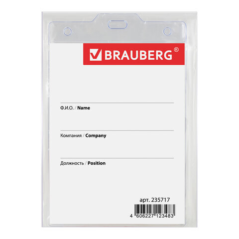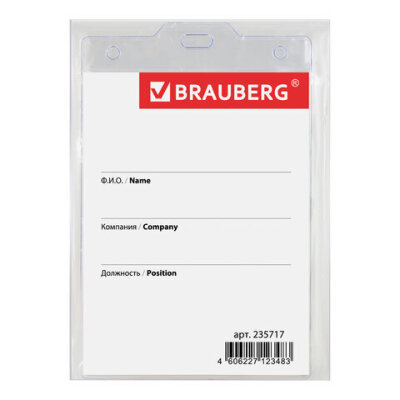 Вертикальный большой бейдж BRAUBERG для именной карточки предназначен для идентификации сотрудников в компаниях, а также на семинарах, тренингах, презентациях и других мероприятиях.