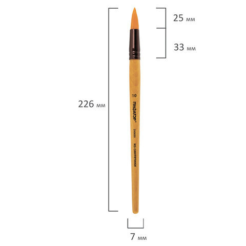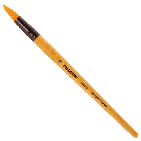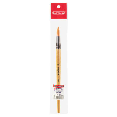 Кисть ПИФАГОР, СИНТЕТИКА, круглая, № 10, деревянная лакированная ручка, с колпачком, пакет с подвесом, 200850