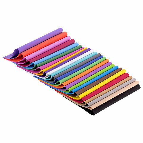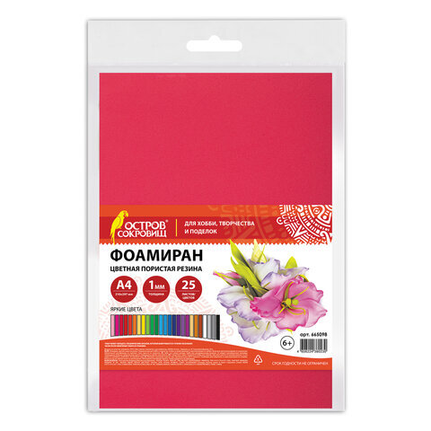 Пористая резина/фоамиран А4, 1 мм, НАБОР, 25 листов, 25 цветов, яркие цвета, ОСТРОВ СОКРОВИЩ, 665098