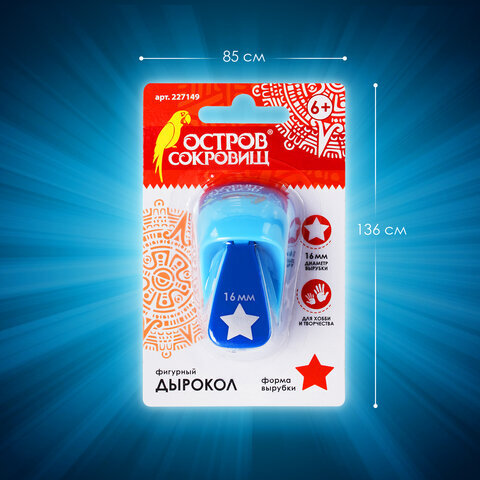 Дырокол фигурный "Звезда", диаметр вырезной фигуры 16 мм, ОСТРОВ СОКРОВИЩ, 227149