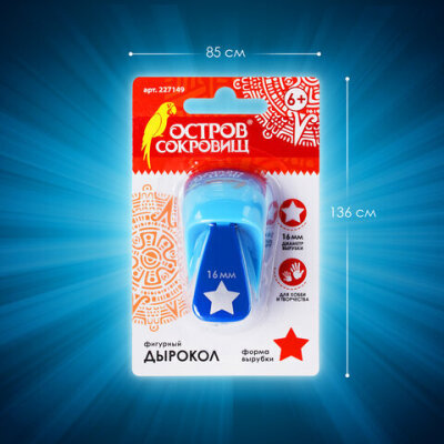 Фигурный дырокол ОСТРОВ СОКРОВИЩ – незаменимый и очень простой инструмент для детского и взрослого творчества. Используется для оформления края листа, для создания аппликаций, открыток, альбомов, пригласительных, а также для изготовления конфетти.