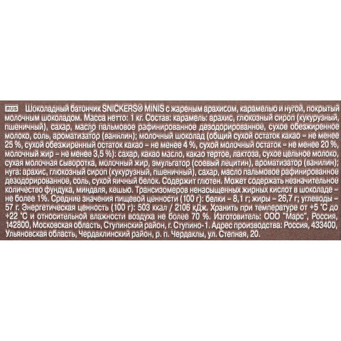 Вкусные и питательные SNICKERS Minis помогут утолить голод, где бы Вы ни находились. Сочетание нуги, карамели, арахиса и, конечно же, молочного шоколада. Это не просто перекус, а перекус с удовольствием!
