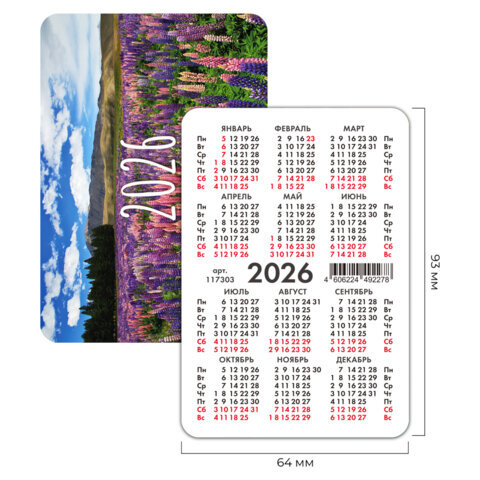 Календарь карманный на 2026 г, BRAUBERG, 64х93 мм, АССОРТИ №1, 20 видов, 117303