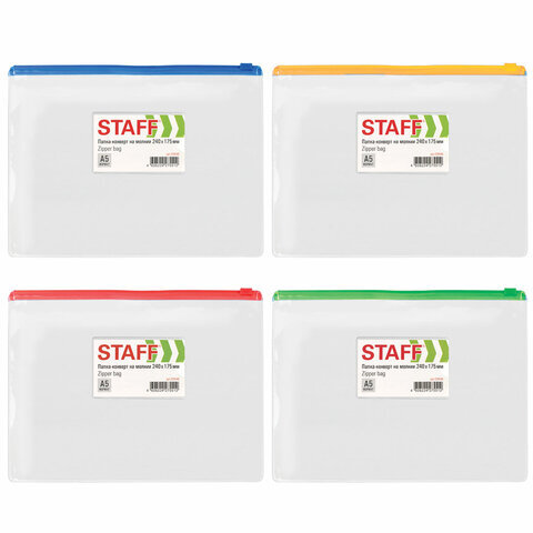 Папка-конверт на молнии STAFF идеально подойдет для хранения и транспортировки важных документов.