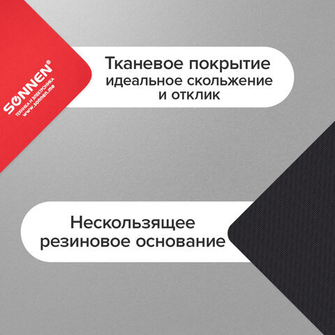 Коврик для мыши SONNEN "RED", резина + ткань, 220х180х3 мм, 513306