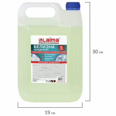 Средство для отбеливания, дезинфекции и уборки 5 л БЕЛИЗНА КОНЦЕНТРАТ (хлора 15-30%), LAIMA PROFESSIONAL, 606747