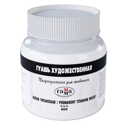 Гуашь художественная 1 шт., ГАММА, 220 мл, белила титановые, 0.20.В220.009