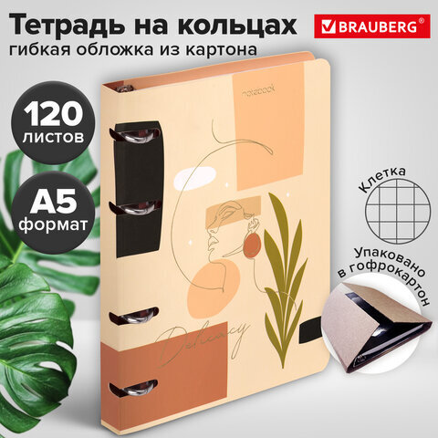 Тетрадь на кольцах А5 160х212 мм, 120 листов, картон, фольга, клетка, BRAUBERG, "Pretty woman", 404736
