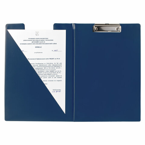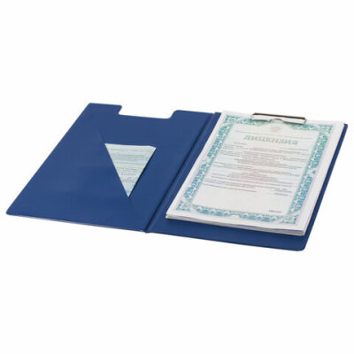 Папка-планшет ОФИСМАГ, А4 (340х240 мм), с прижимом и крышкой, картон/ПВХ, РОССИЯ, синяя, 225983