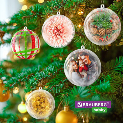 Пластиковые шары для поделок BRAUBERG HOBBY предназначены для создания уникальных новогодних украшений, красочных поделок и аксессуаров для дома.