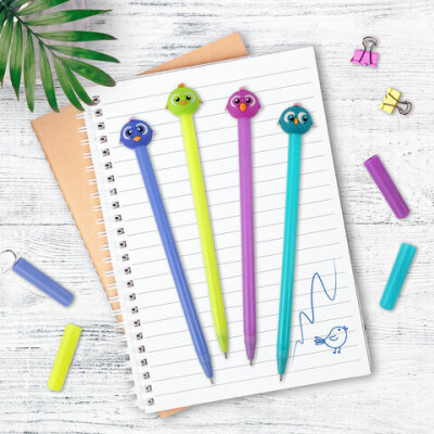 Шариковая ручка масляная ЮНЛАНДИЯ "Птенец" с милой игрушкой на корпусе.