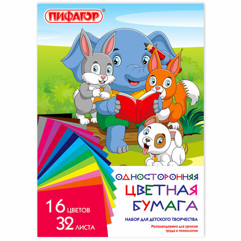 Цветная бумага А4 газетная, 32 листа, 16 цветов, на скобе, ПИФАГОР, 200х280 мм, "Друзья", 115486