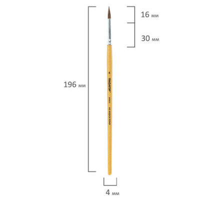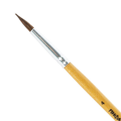 Кисть ПИФАГОР № 4 подходит для работы с акварелью, гуашью, тушью, а также для прорисовывания различных деталей рисунка. Снабжена защитным пластиковым колпачком.