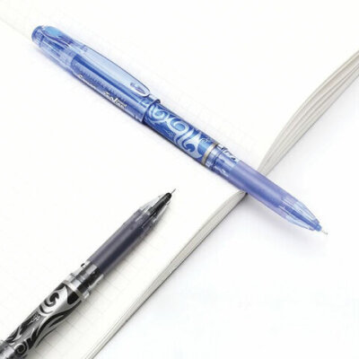 • Чернила обесцвечиваются при нагревании. Достаточно потереть надпись резинкой, расположенной на конце корпуса ручки, и надпись исчезнет. При корректировке надписи бумага остается невредимой, можно писать поверх стертого.