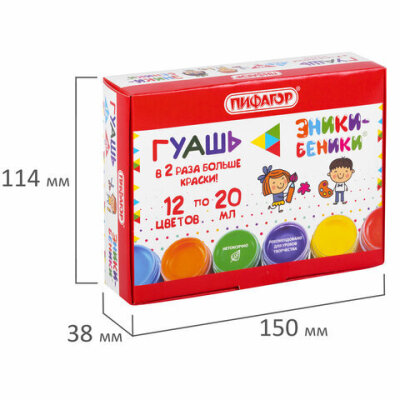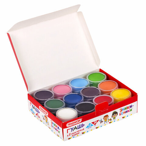 Гуашь ПИФАГОР "ЭНИКИ-БЕНИКИ NEW", 12 цветов, по 20 мл, 192526