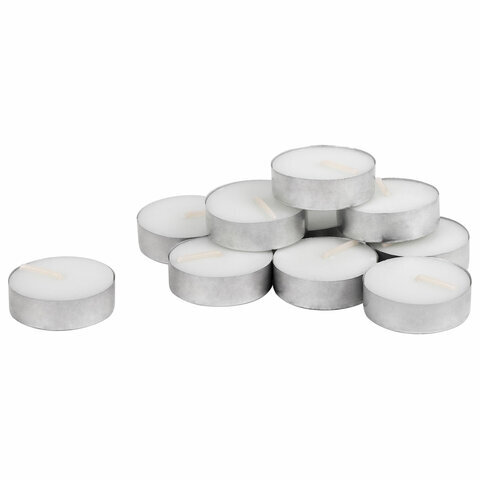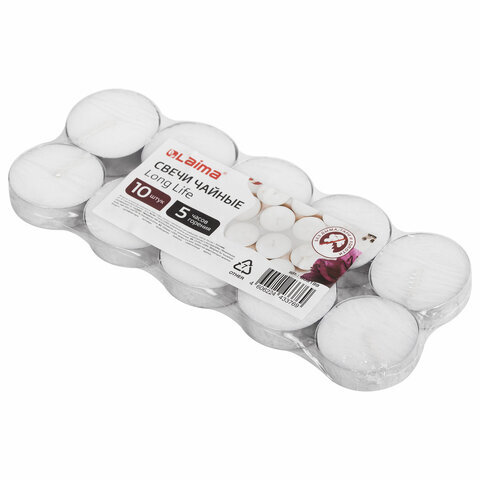 Свечи чайные Long Life, до 5 часов горения, вес 12 г, КОМПЛЕКТ 10 шт., в гильзе, LAIMA, 609199