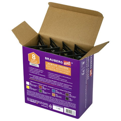 Художественные акриловые краски BRAUBERG ART DEBUT предназначены для живописи и декоративных работ.