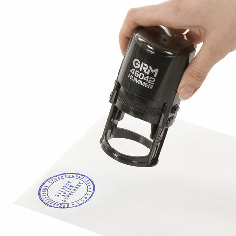 Диаметр оснастки позволяет использовать гербовые печати, изготовленные по ГОСТ D=42 мм. В оснастках Hummer используется механизм увеличенного срока службы. Защитная крышка Safebox предохраняет печать от повреждения, а штемпельную подушку - от высыхания.