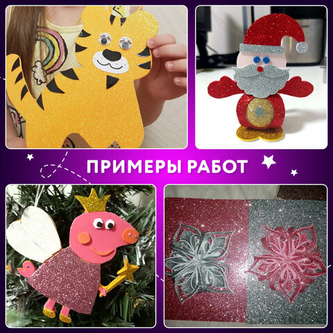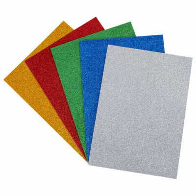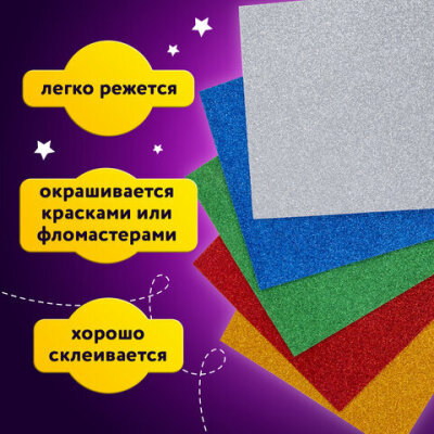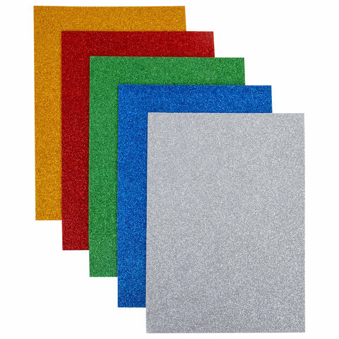 Пористая резина/фоамиран А4, 2 мм, НАБОР, 5 листов, 5 цветов, яркие цвета, блестки, ЮНЛАНДИЯ, 662052