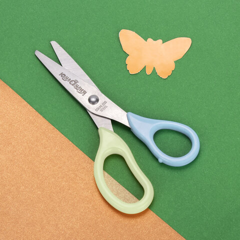 Ножницы ЮНЛАНДИЯ разработаны специально для детского творчества. Техника работы этим инструментом требует координации обеих рук, так как они одновременно выполняют разные движения. Это положительно влияет на развитие мелкой моторики и образного мышления.