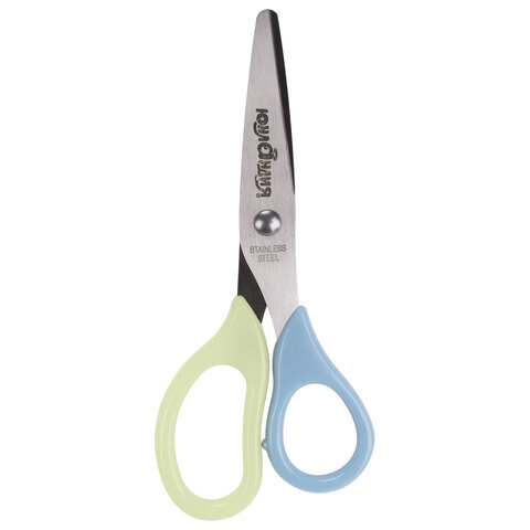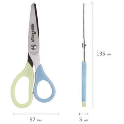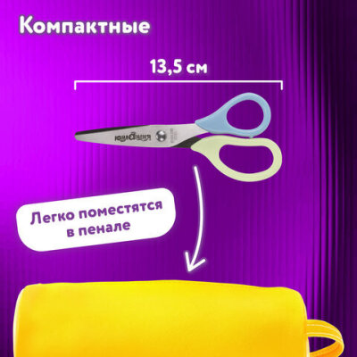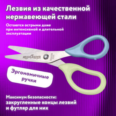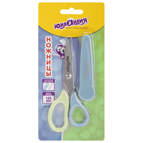Ножницы ЮНЛАНДИЯ, 135 мм, с футляром для лезвий, мятно-голубые, блистер, 237110