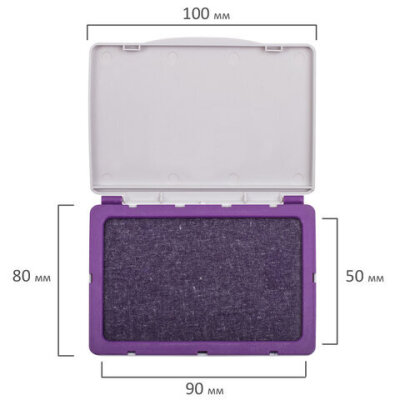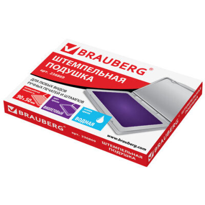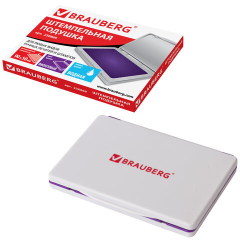 Штемпельная подушка BRAUBERG, 100х80 мм (рабочая поверхность 90х50 мм), фиолетовая краска, 236869
