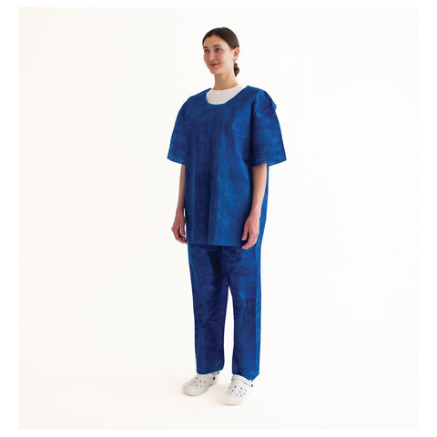 Костюм хирургический синий (рубашка и брюки) 56-58 р., спанбонд 42 г/м2, ГЕКСА