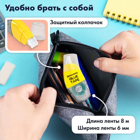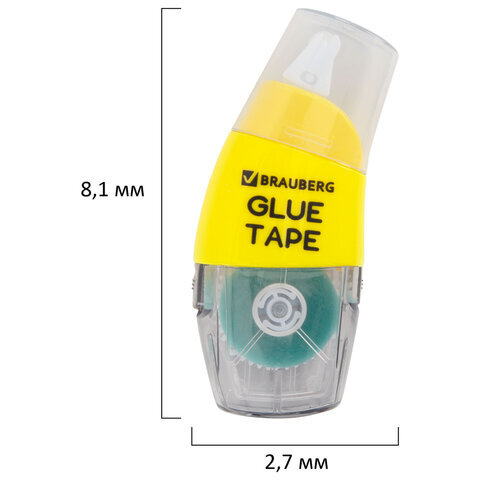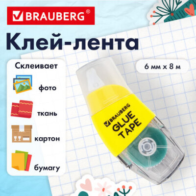 Клей-лента BRAUBERG SPECIAL, 6 мм х 8 м, корпус жёлтый, блистер, 273028