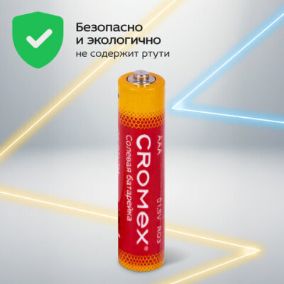 Солевые батарейки CROMEX популярного типоразмера AAА идеально подходят для приборов с низким потреблением энергии. Рекомендуется использовать в электронных будильниках, пультах ДУ.