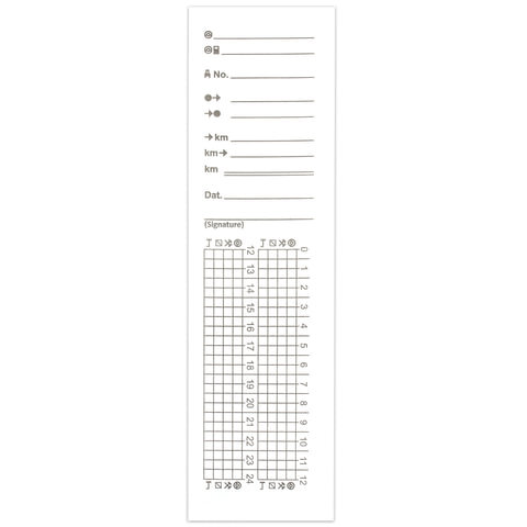 • Предназначены для печати данных о режиме труда и отдыха водителя. На обратной стороне ленты нанесена сетка с метками времени и пиктограммами для записи данных вручную (в случае выхода тахографа из строя). Подходят для всех типов цифровых тахографов.