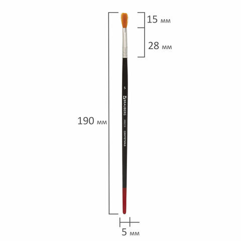 Кисть BRAUBERG, синтетика, плоская, № 5, 200213