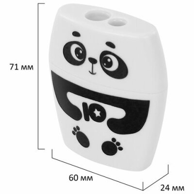 Точилка с контейнером для простых и утолщенных карандашей ЮНЛАНДИЯ "ПАНДА", 2 отверстия, 272507