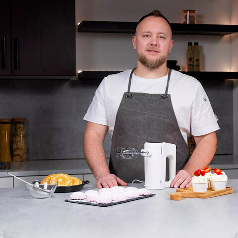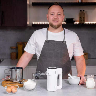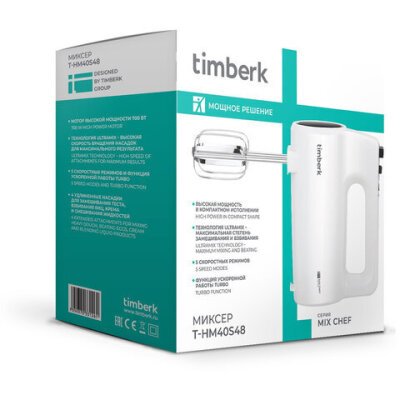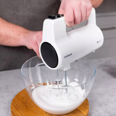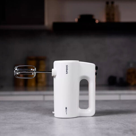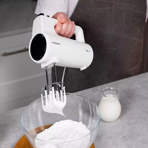 Миксер TIMBERK T-HM40S48, 700 Вт, 5 скоростей, 2 венчика, 2 крюка для теста, белый