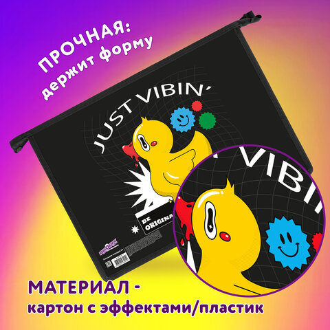 Папка для тетрадей ЮНЛАНДИЯ А4, 1 отделение, картон/пластик, конгрев, на молнии, "Duck tales", 272134