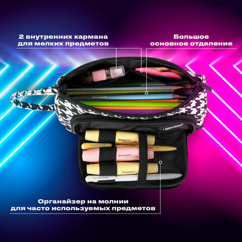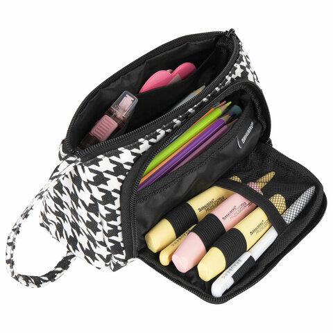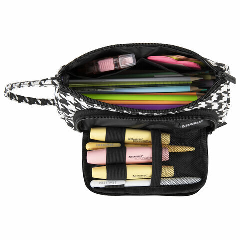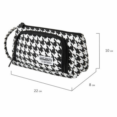 Пенал-косметичка BRAUBERG с ручкой, 1 откидная планка, полиэстер, 22x10х8 см, "Houndstooth", 271560