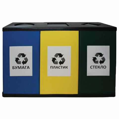 Урна металлическая для раздельного сбора мусора, 700х1065х360 мм, 3 бака по 80 литров, оцинкованная сталь/прочный термостойкий пластик, 450