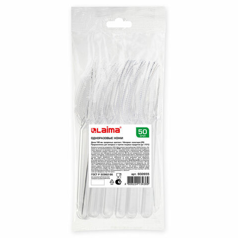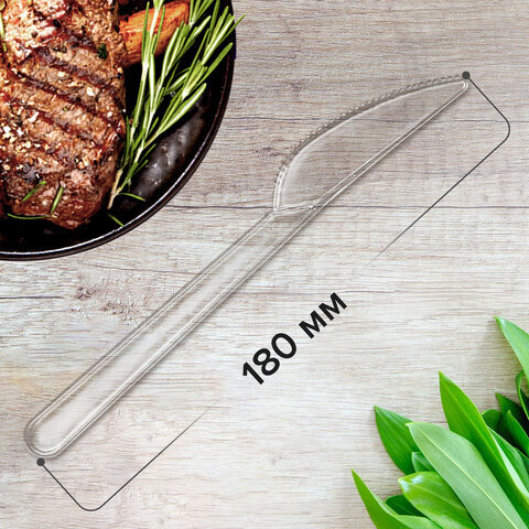 Нож одноразовый пластиковый 180 мм, прозрачный, КОМПЛЕКТ 50 шт., КРИСТАЛЛ, LAIMA, 602655