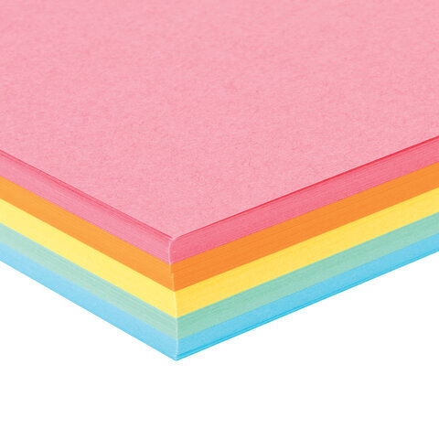 Бумага цветная BRAUBERG, А4, 80 г/м2, 100 л. (5 цветов х 20 листов), медиум, для офисной техники, 112462