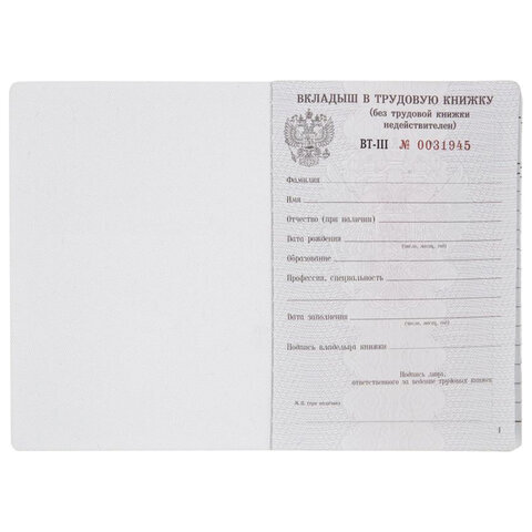 «АЛГОРИТМ»| Вид бланка | вкладыш в трудовую книжку |