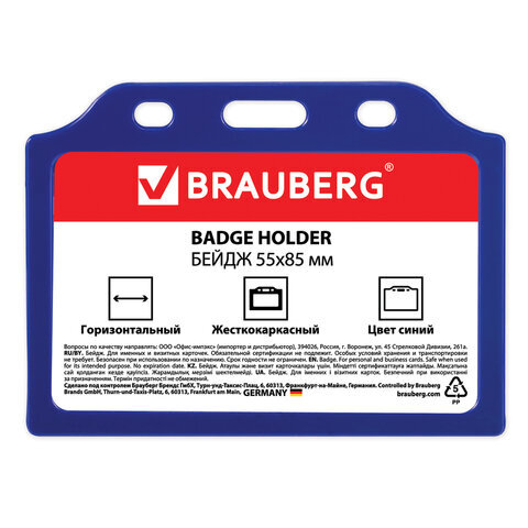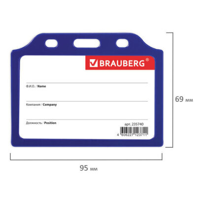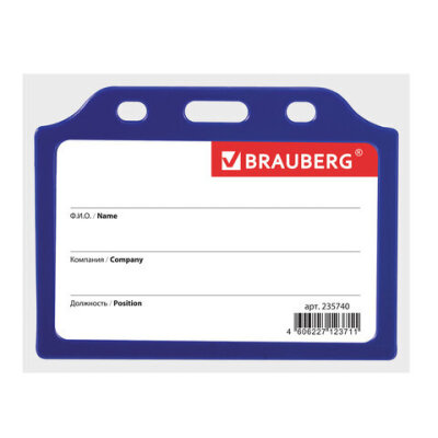 Горизонтальный бейдж BRAUBERG для именной карточки предназначен для идентификации сотрудников в компаниях, а также на семинарах, тренингах, презентациях и других мероприятиях.