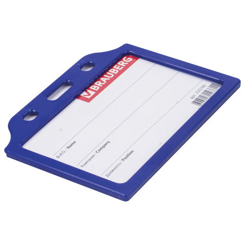 Бейдж горизонтальный жесткокаркасный (55х85 мм), без держателя, СИНИЙ, BRAUBERG, 235740