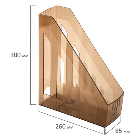 Лоток вертикальный для бумаг BRAUBERG "Contract" (260х85х300 мм), отверстия на торцах, тонированный, 230892