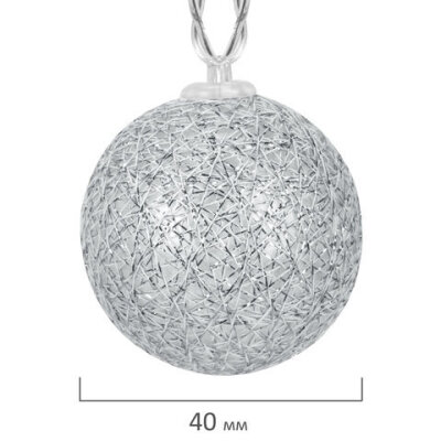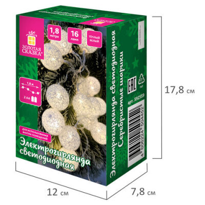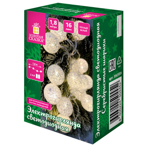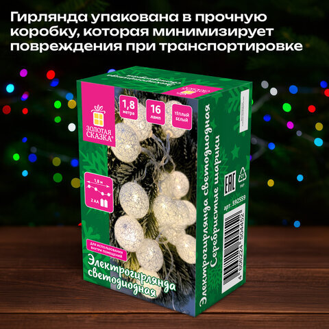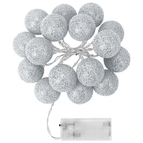 Электрогирлянда-нить комнатная "Шарики" 1,8 м, 16 LED, серебро, тёплый белый, батарейки, ЗОЛОТАЯ СКАЗКА, 592559